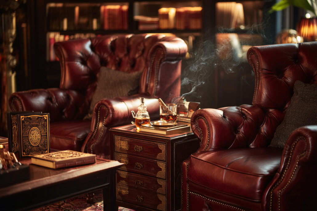 Também é importante lembrar que esses espaços clássicos costumavam valorizar repertório, discrição e certa sofisticação silenciosa. O charuto se tornou parte dessa paisagem justamente por carregar densidade histórica e visual. Em bibliotecas privativas, lounges tradicionais, salas de convivência e ambientes de recepção mais refinados, ele aparecia não apenas como hábito, mas como elemento de composição. Sua presença ajudava a reforçar a ideia de um lugar pensado para conversas longas, decisões ponderadas e uma relação menos superficial com o ambiente. Em muitos casos, o espaço físico parecia quase desenhado para acolher esse tipo de gesto, com madeira escura, couro, iluminação quente e objetos que envelheciam com dignidade. O charuto, ali, era menos um centro e mais uma extensão coerente daquela atmosfera.
